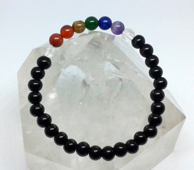 Chakra Bracelet - 1 sequence Surrounded by Black Onyx 6 mm beads